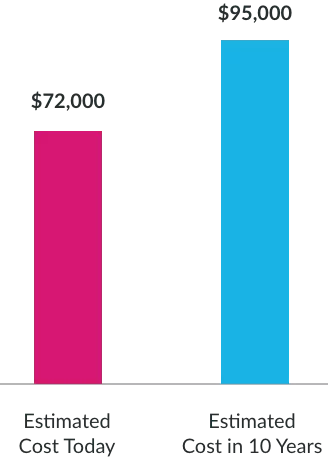 A serious illness with recovery lasting 6 months could impact your finances by $72,000 if it happened to you today and by $95,000 if it occurred in 10 years time (when you earn more, and may require more recovery resources).