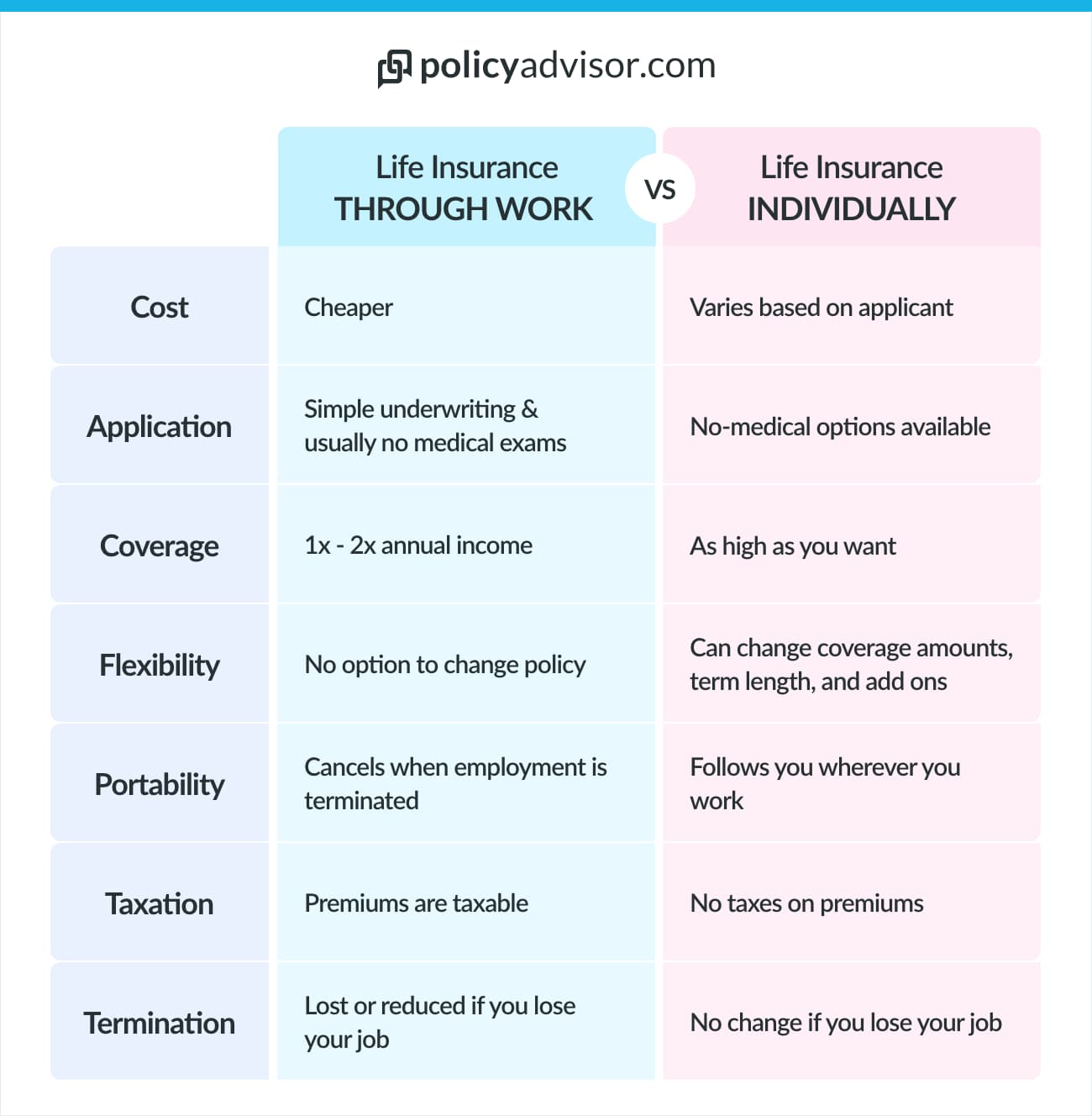 - Life insurance through group benefits is not a guarantee. An individual term life insurance policy offers the most comprehensive benefits
