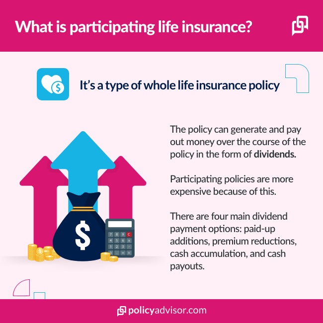 Whole life insurance can also be participating, which generates dividends that are paid out to you every year. This can be particularly useful with infinite banking because you can use life insurance dividend payments toward your insurance premiums. Or, you can use them to increase your cash value savings portion by reinvesting it into your insurance policy.